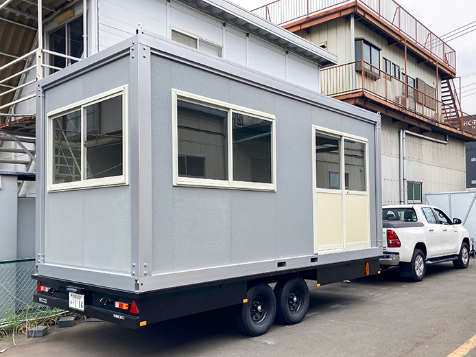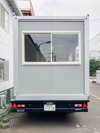 鉄骨構造 軽量形鋼・ノックダウン構造 屋根 ガルバリウム鋼板t=0.3mm 天井 両面カラー鋼板@0.3 断熱ウレタンパネル@40 壁面パネル 両面カラー鋼板@0.3 断熱ウレタンパネル@30 建具(ドア) アルミドア(上部:透明ガラス3t・腰板:アルミ複合板4t) 建具(窓) アルミサッシ引違い(透明ガラス) 床 合板@15 仕上げ:PVCフロアシート 照明 FL40(36W×2灯用) 漏電ブレーカー 100V/20W コンセント 2口用 換気扇 ウェザーカバー付き 外線引込口 樹脂製 1F床面積 計算式:2.11×5.18=10.92㎡ エアコン オプション